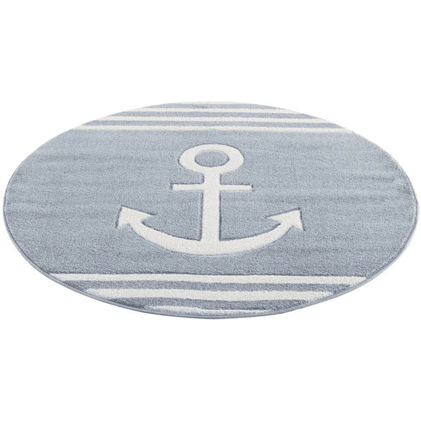 LIVONE Kinderteppich Kids love Rugs Anker Rund blau/weiss