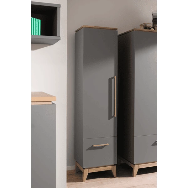 Das Regal mit Tür und Schublade bietet dank seiner Schrankhöhe noch mehr